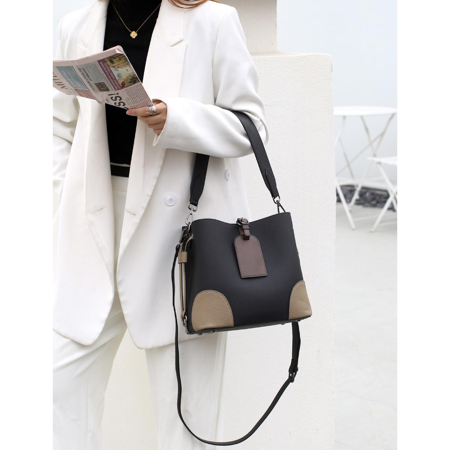 Женская сумка из коровьей кожи, одноплечевая женская сумка, модная, универсальная, практичная сумка-ведро большой вместимости, мягкая кожа чёрный