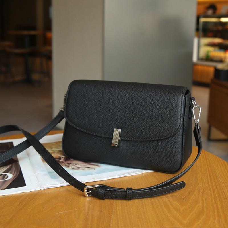 Женская сумка из натуральной кожи, маленькая квадратная сумка с верхним слоем из коровьей кожи премиум-класса через плечо чёрный