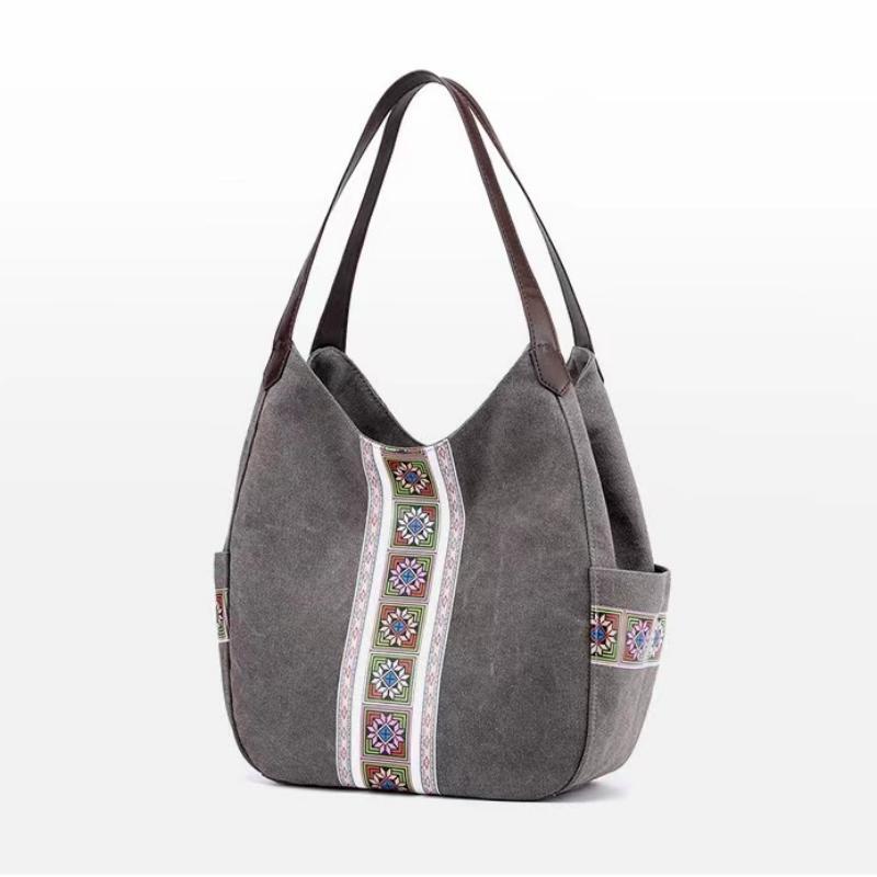 Женская сумка из холста, ручная сумка через плечо, напечатанная, модная и простая, в этническом стиле, многослойная, повседневная сумка для покупок