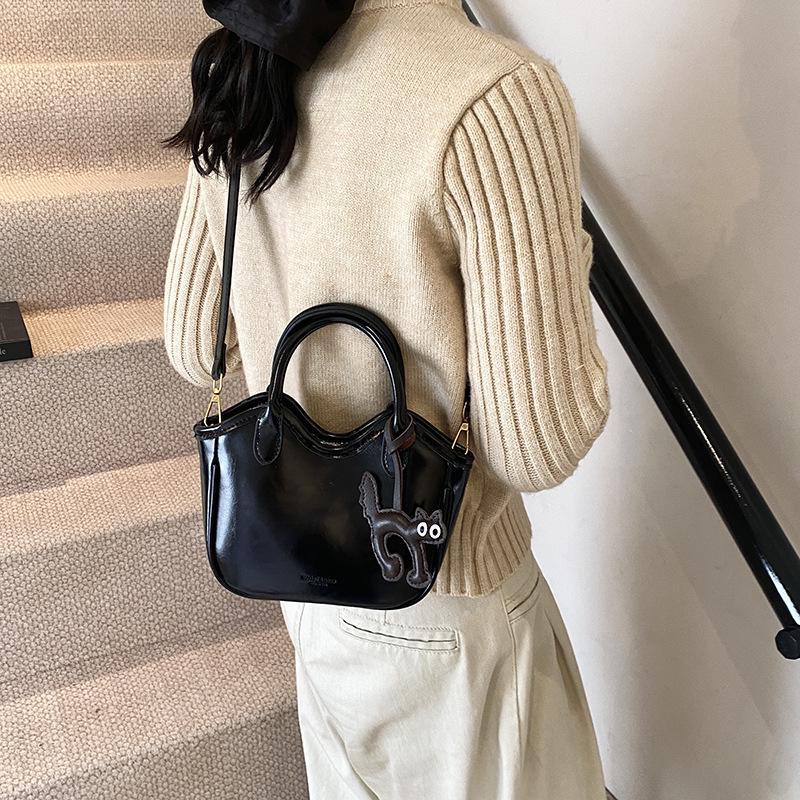 Женская сумка-корзина из высококачественной вощеной кожи осень/зима 2024 года — маленькая сумка-тоут, сумка через плечо или сумка-мессенджер black. 24*8*16 чёрный
