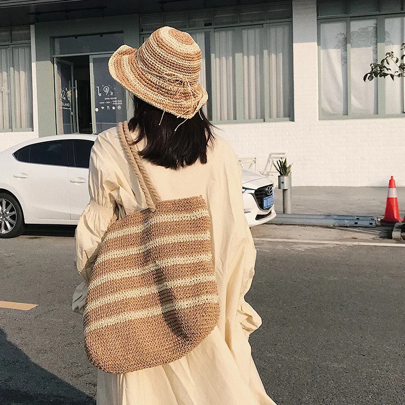 Женская сумка, летняя пляжная сумка из ротанга, плетеная Плетеная соломенная сумка ручной работы, Большая вместительная кожаная женская су...