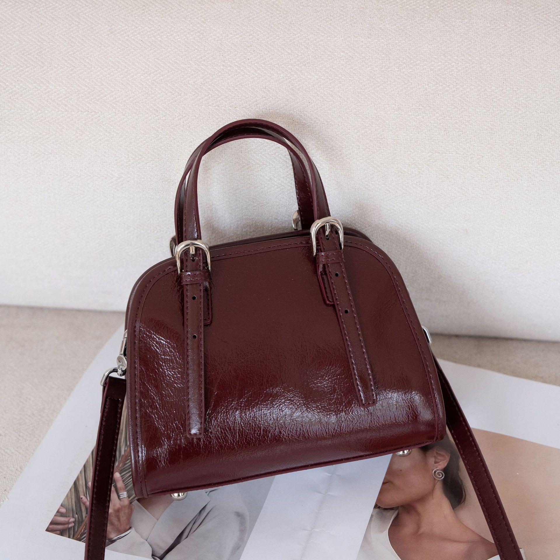 Женская сумка-мессенджер на плечо из коровьей кожи, большая вместимость, портативная, модная, универсальная, простая сумка-тоут на молнии, натуральная кожа бордовый