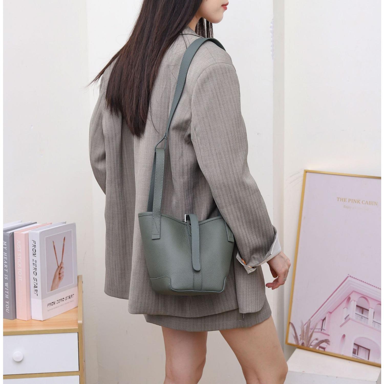 Женская сумка на плечо из коровьей кожи, нишевая сумка кроссбоди для мамы, модная и простая сумка-корзина для овощей, сумка-ракушка. зелёный