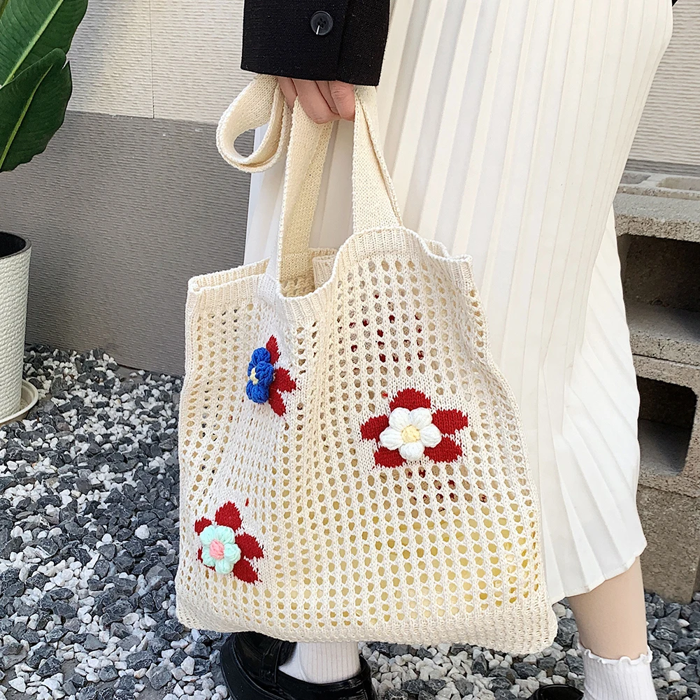 Женская сумка на плечо, модная ажурная сетчатая сумочка с верхними ручками, Вязаная Мягкая сумка для девушек с трехмерным цветочным декором