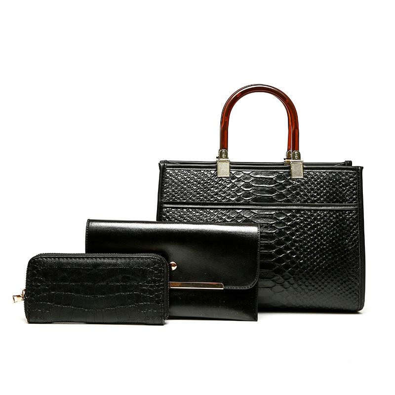 Женская сумка, новая ретро сумка из трех частей, большая вместительная сумка со змеиным узором, косая сумка на одно плечо set bag чёрный