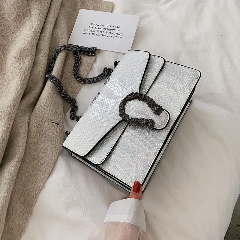 Женская сумка со змеиным узором, осенняя новая цепочка, маленькая квадратная сумка, европейская и американская мода, женская сумка из змеиной кожи, персонализированная женская сумка через плечо белый