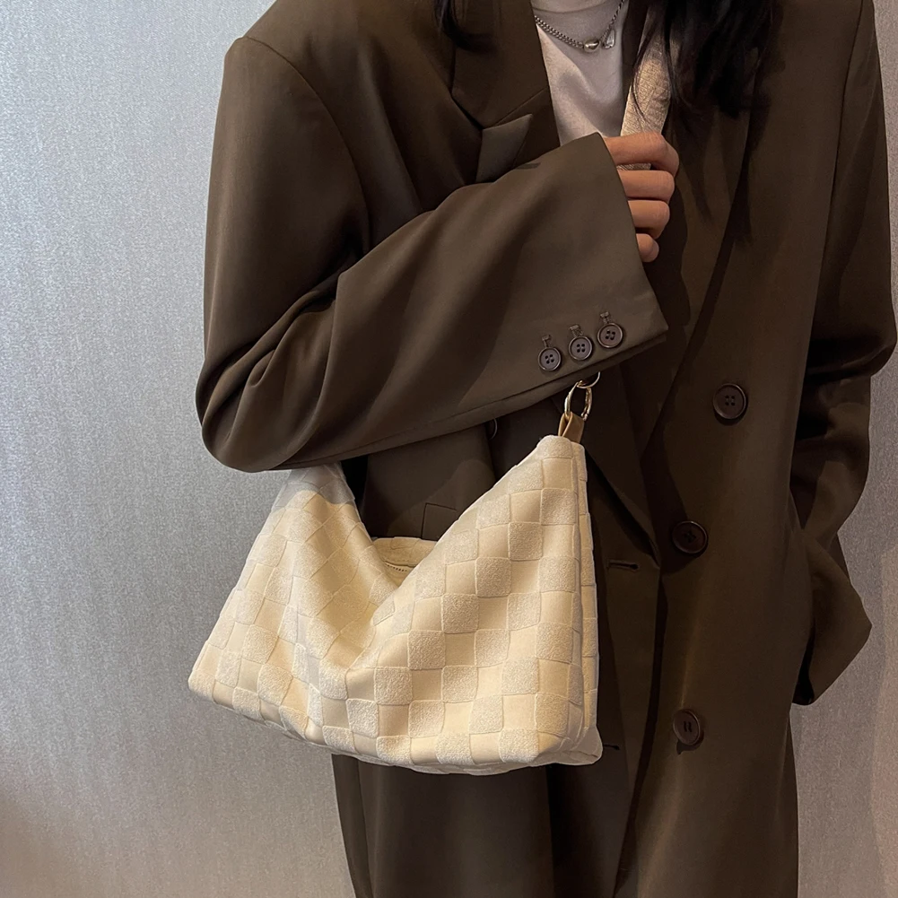 Женская сумка с верхней ручкой, Элегантная Дамская клетчатая сумка через плечо, Модная Портативная сумка на молнии для улицы, повседневные ...