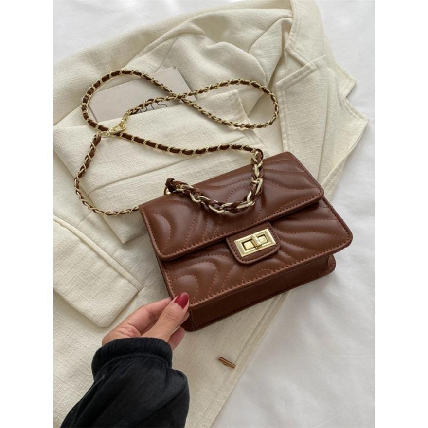 Женская сумка с цепочкой в стиле ретро, универсальная, простая, темпераментная, маленькая квадратная сумка с металлической пряжкой на одно плечо через плечо