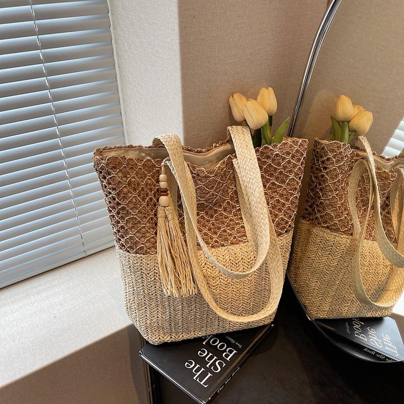 Женская сумка-тоут большой вместимости, новая летняя плетеная соломенная сумка через плечо, пляжная сумка для отпуска на море