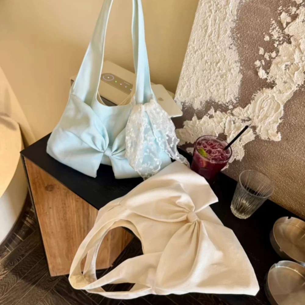 Женская сумка-тоут в корейском стиле с бантом, весна-лето, большая вместительная милая молочно-белая сумка на одно плечо, универсальные сумки