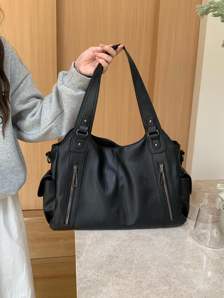 Женская сумка-тоут в стиле ретро 2025 года с большим объемом через плечо и через плечо — идеальный вариант для осени и зимы чёрный
