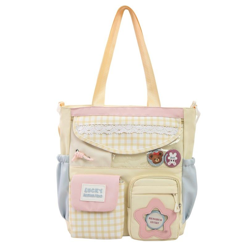 Женская сумка через плечо Студенческая сумка для книг Большая вместимость Сумка с цветовыми блоками Сумка кроссбоди жёлтый