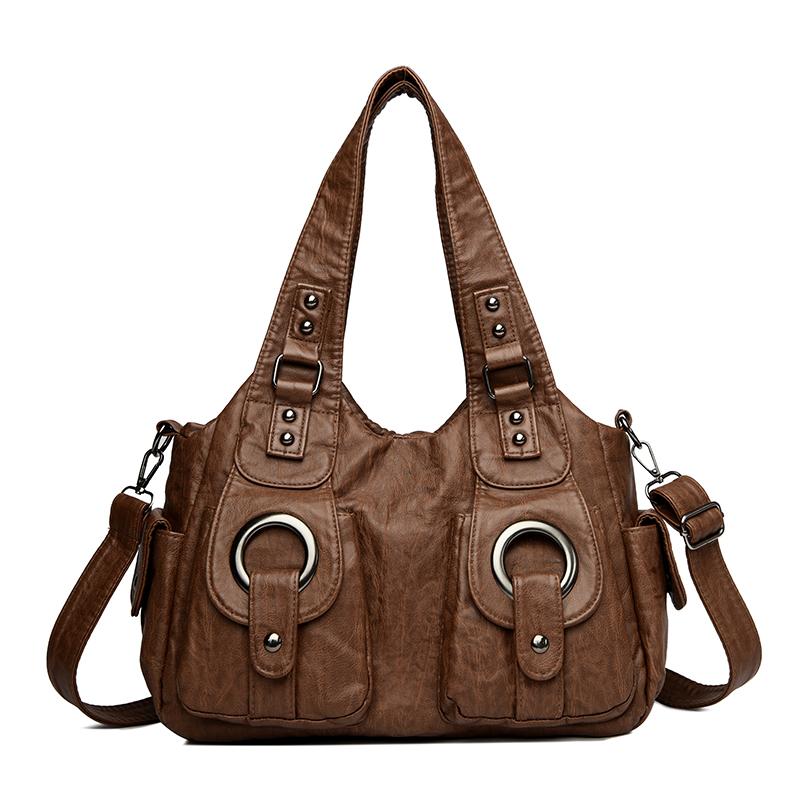 Женская сумка через плечо, большая вместимость, сумка для мам среднего возраста, сумка через плечо из ПУ коричневый
