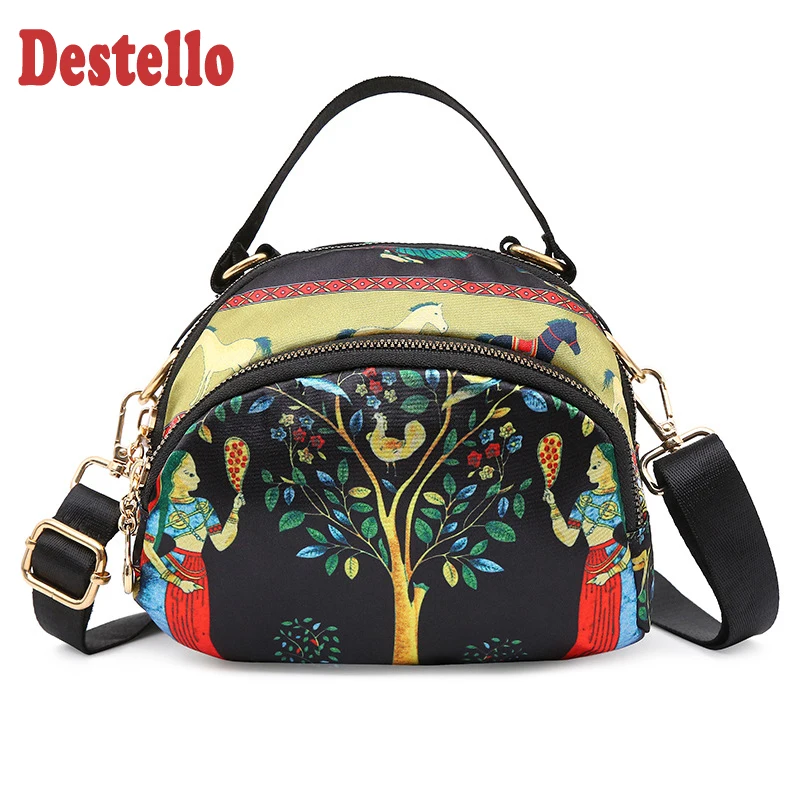 Женская сумка через плечо в богемном стиле, нейлоновая Милая дамская сумочка на ремне с принтом и ручками в стиле пэчворк, женские кошельки ...
