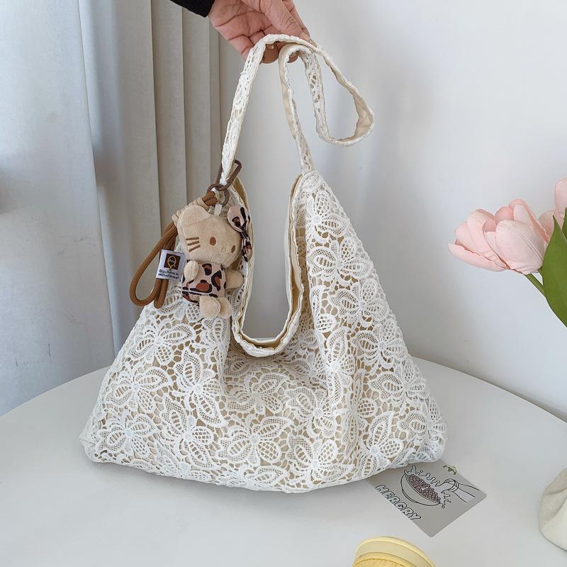 Женская сумка через плечо в пасторальном стиле, летняя, с нежным кружевом, растворимым в воде, большая вместительная сумка-тоут, нишевая сумочка