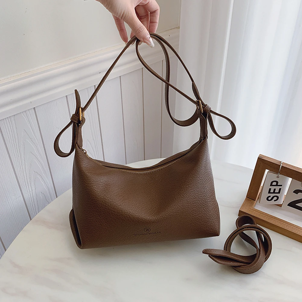 Женская сумка через плечо в стиле ретро, большая вместительная универсальная сумка в форме полумесяца, повседневная сумка из искусственной кожи, дорожная рабочая сумка для покупок