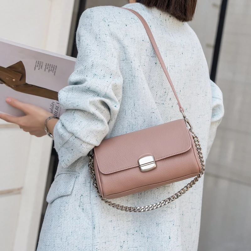Женская сумка через плечо из натуральной кожи - приятная для пригородных поездок, маленькая сумка через плечо с ремешком-цепочкой для повседневных шикарных маленьких кошельков