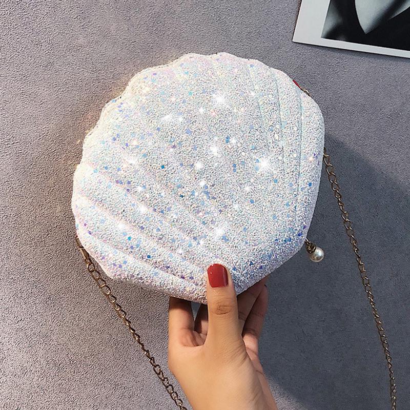 Женская сумка через плечо, милые сумки с лазерными блестками и жемчужными ракушками, женская сумка-мессенджер с цепочкой, сумка на плечо, новая сумка в виде ракушки