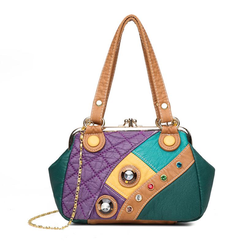 Женская сумка через плечо, модная маленькая контрастная женская сумка, большая сумка со стразами и заклепками цвета травы