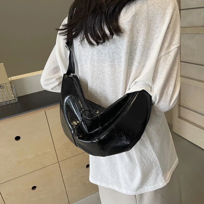 Женская сумка через плечо с клецками, однотонная повседневная сумка в форме полумесяца, большая вместительная сумка-саквояж в стиле ретро, женская дорожная сумка
