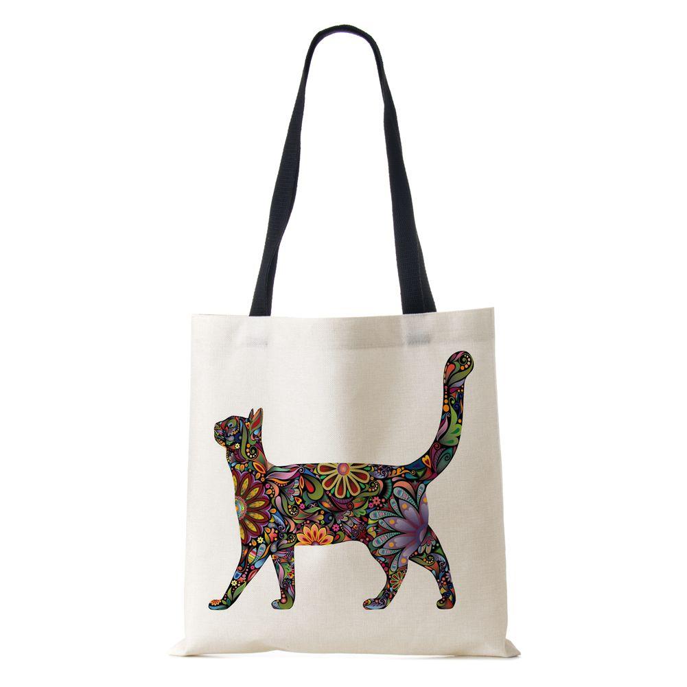 Женская сумка через плечо с собакой и кошкой, холщовая повседневная сумка для путешествий, 2022, винтажная большая вместительная сумка с эко-принтом, большая вместительная сумка для книг