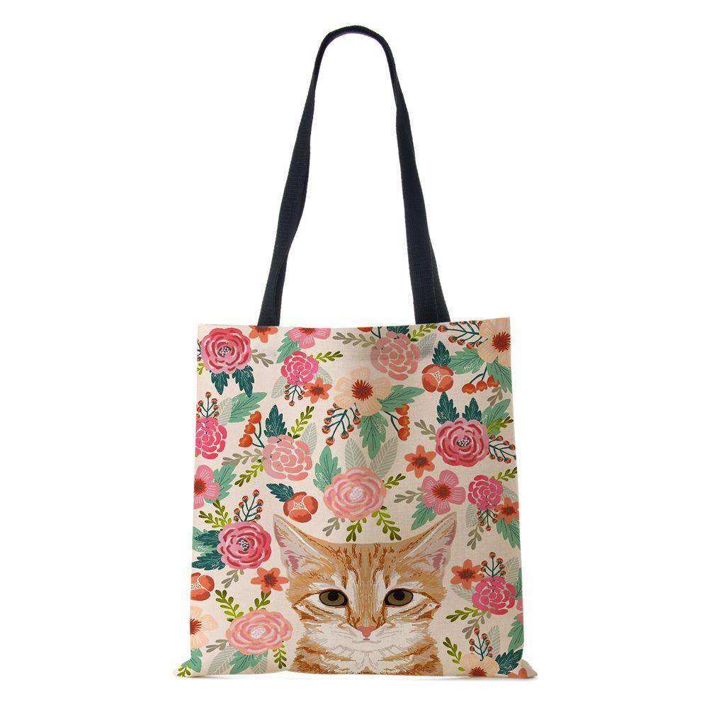 Женская сумка через плечо с собакой и кошкой, холщовая повседневная сумка для путешествий, 2022, винтажная большая вместительная сумка с эко-принтом, большая вместительная сумка для книг