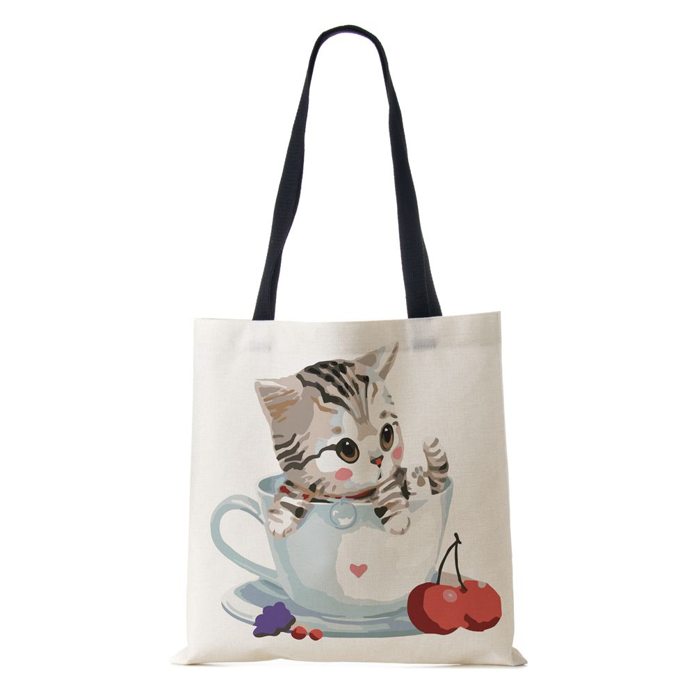 Женская сумка через плечо с собакой и кошкой, холщовая повседневная сумка для путешествий, 2022, винтажная большая вместительная сумка с эко-принтом, большая вместительная сумка для книг