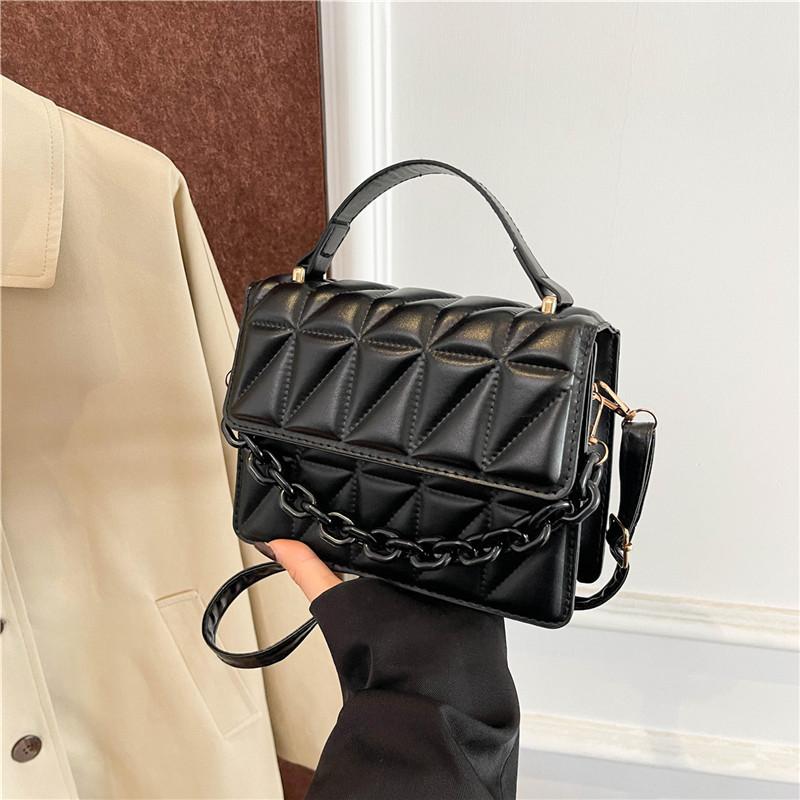 Женская сумка через плечо Shangxin 2025 новая модная портативная маленькая квадратная сумка простая ромбовидная популярная сумка-мессенджер чёрный