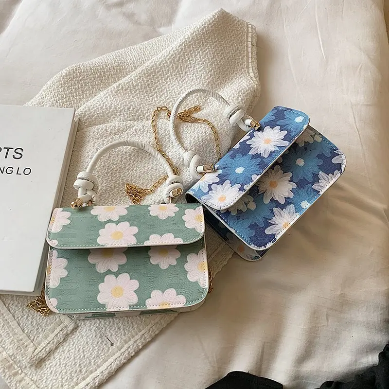 Женская сумка-шоппер, маленькая дизайнерская сумка, женская летняя универсальная Новая модная сумка на одно плечо с цепочкой и цветами, 2021