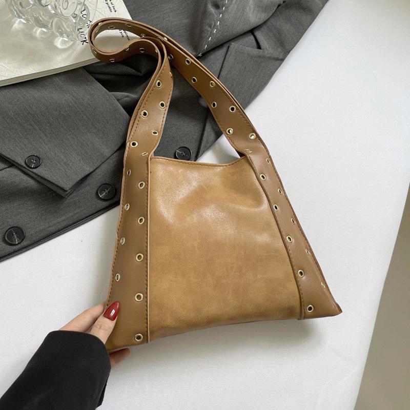 Женская сумка 2025 осень и зима новая металлическая заклепка одно плечо повседневная сумка-подмышка сумка-тоут для поездок большая сумка коричневый
