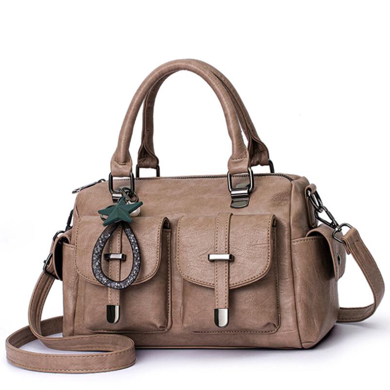 Женская сумка Boston, новая модная сумка из мягкой кожи, большая вместимость, женская сумка через плечо в стиле ретро, женская сумка с несколькими карманами