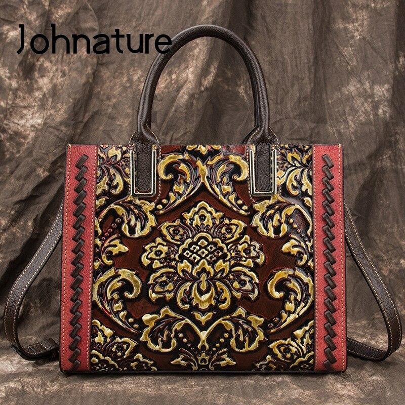 Женская сумка Johnature в стиле ретро с тиснением, роскошные сумки из натуральной кожи большой вместимости, ведра для отдыха, сумки на плечо