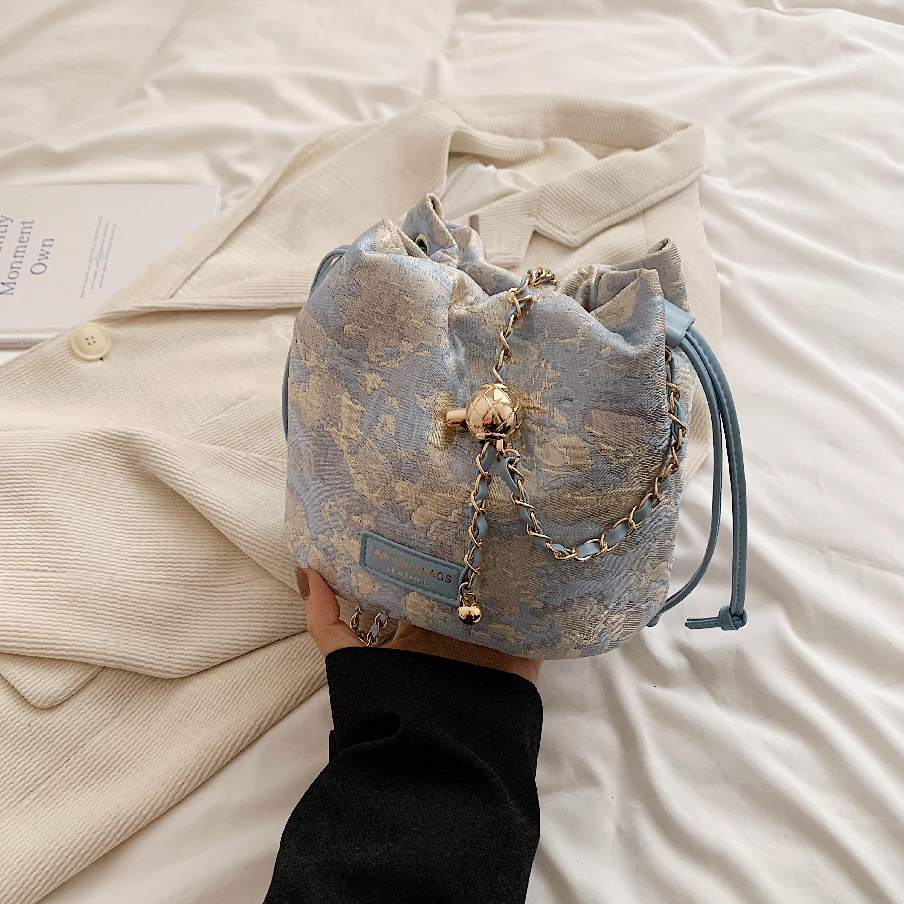 Женская сумочка в китайском стиле, новая маленькая вышитая шелковая сумка-ведро на одно плечо с цепочкой