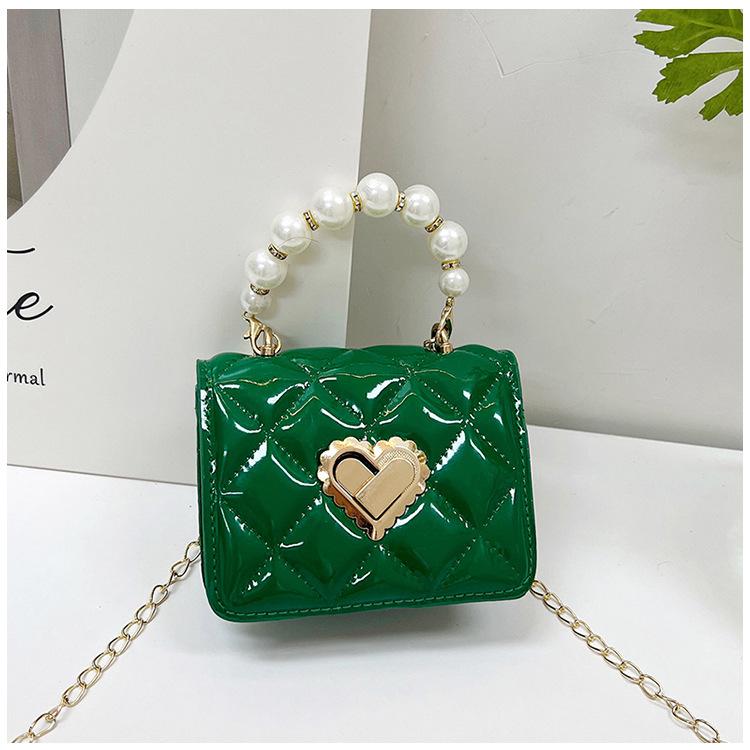 Женская сумочка с ручкой из искусственного жемчуга, золотистым сердцем, съемной металлической цепочкой, элегантная мини-сумка на одно плечо для девочек, милый кошелек зелёный