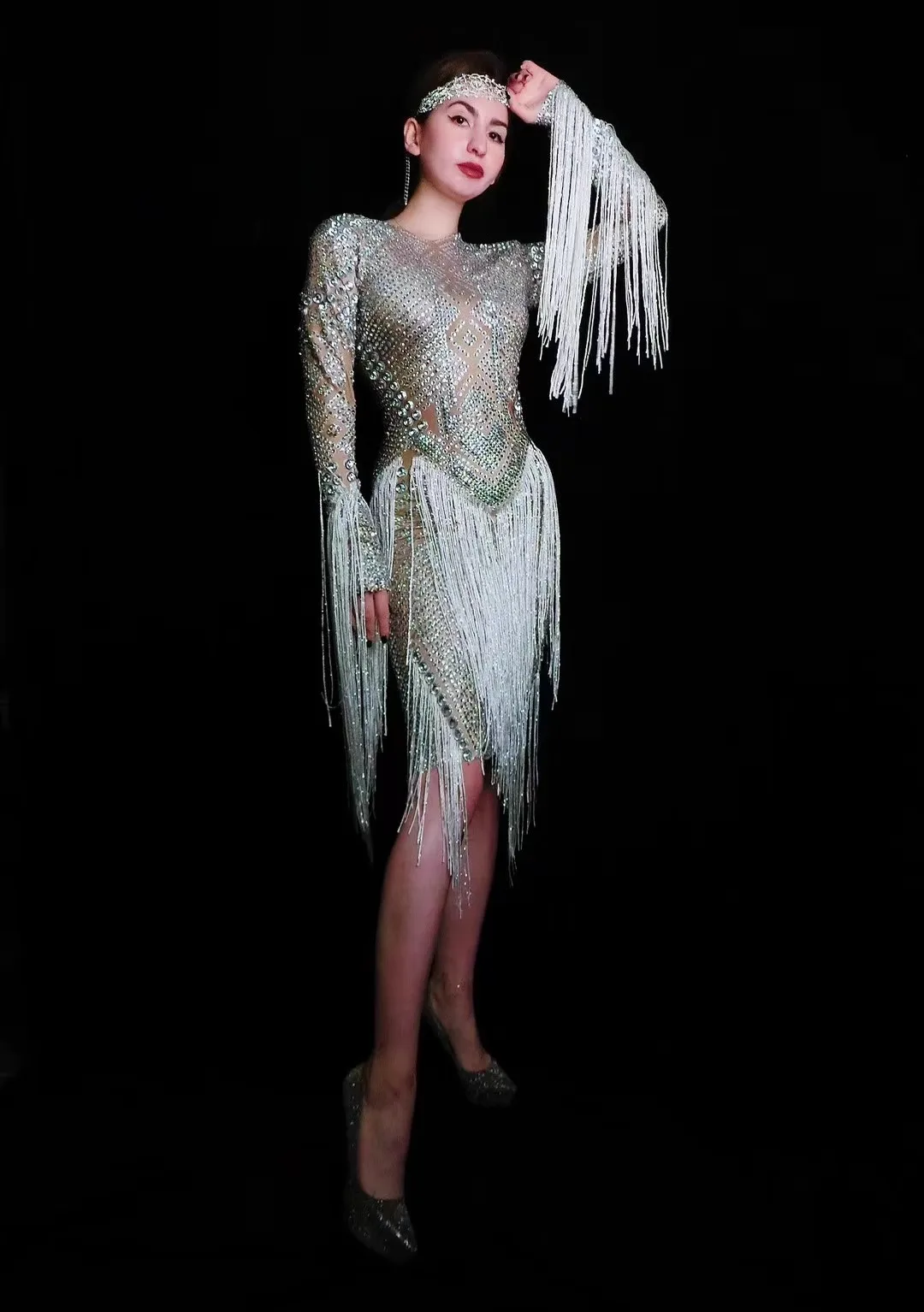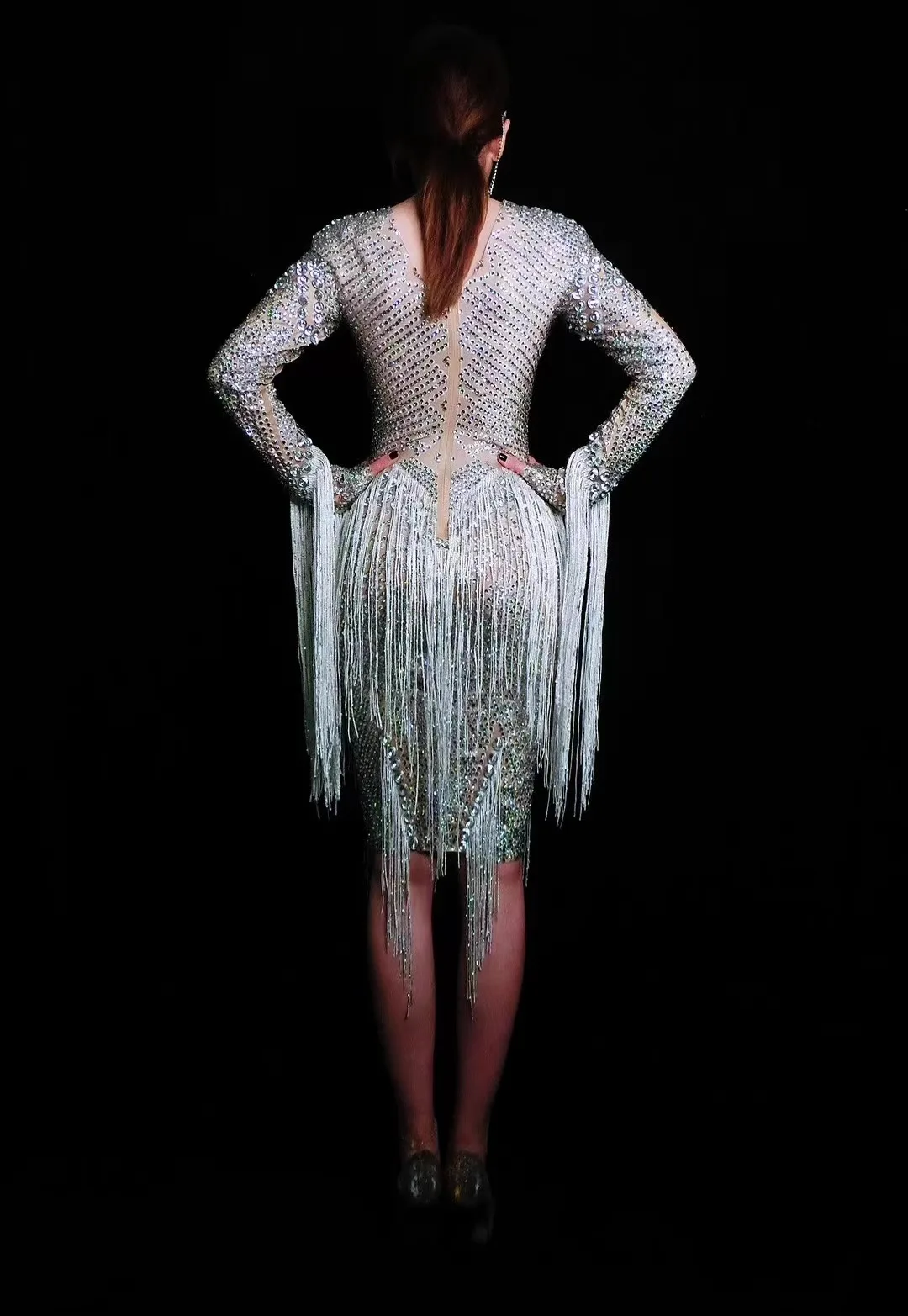 Женская танцевальная модель автомобиля, эластичная короткая юбка с кисточками и стразами, вечернее платье, одежда для выступлений и сцены