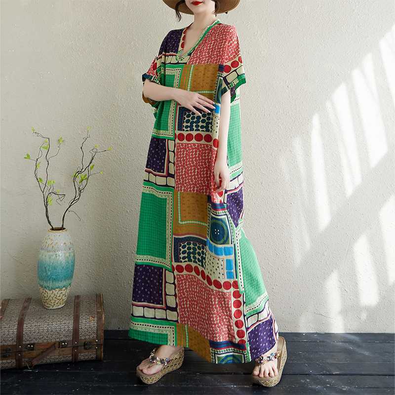 Женская тонкая хлопково-льняная свободная юбка, ретро длинное платье One size