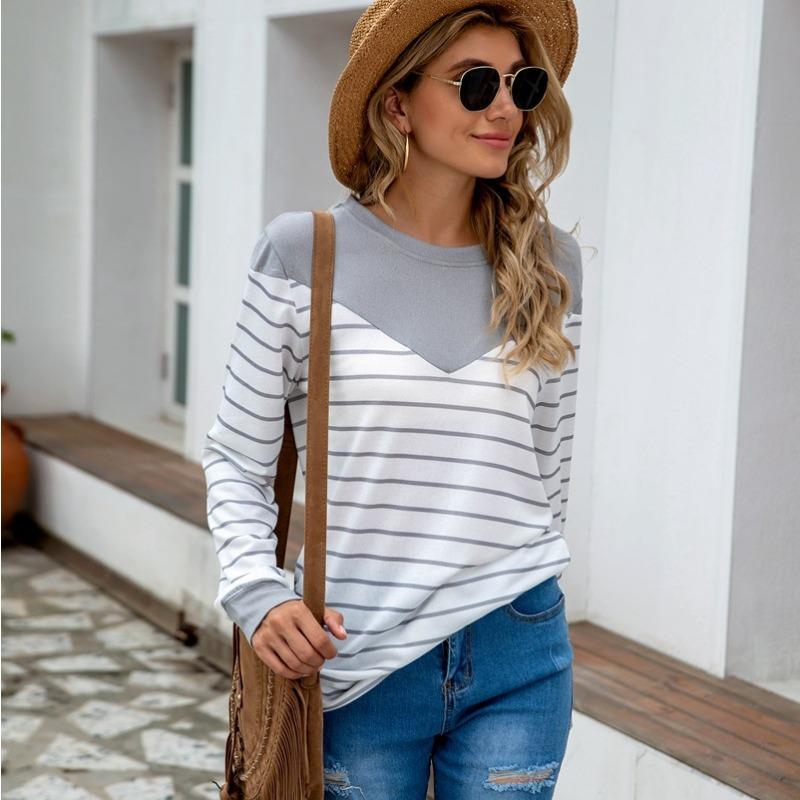 Женская трикотажная блузка с длинными рукавами в полоску в стиле пэчворк для больших размеров 4XL серый