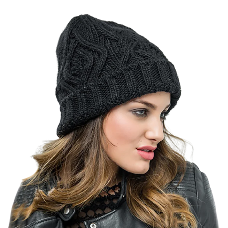 Женская трикотажная осенне-зимняя Толстая шерстяная вязаная крючком шапка Модные женские повседневные сохраняющие тепло шапки без козырь...