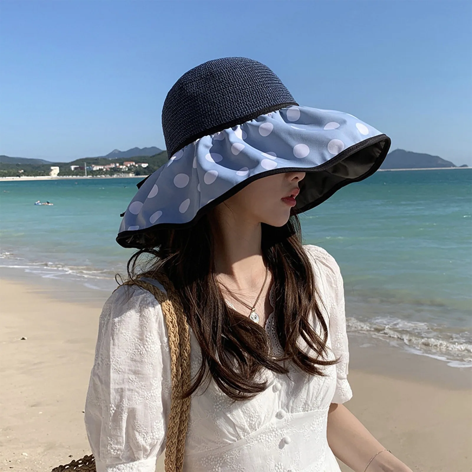 Женская уличная Солнцезащитная шляпа с принтом в горошек, защитная шляпа от солнца для лица, большие мягкие солнцезащитные шляпы для женщин...