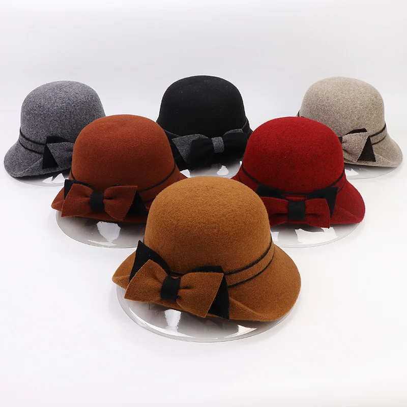 Женская уличная дорожная теплая шерстяная шапка с бантом, модная шапка для раковины на осень и зиму, новая шапка с короткими полями