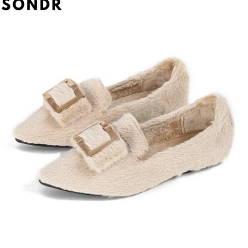 Женская уличная обувь с острым носком, на осень и зиму, теплая женская обувь большого размера на плоской подошве из меха норки и хлопка
