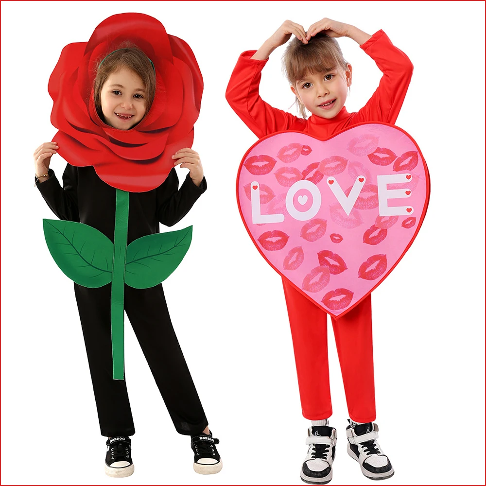 Косплей роза цветок костюмы для детей день святого валентина детская одежда любовь сердце комбинезон пальто комплект Хэллоуин розовый Cover Up