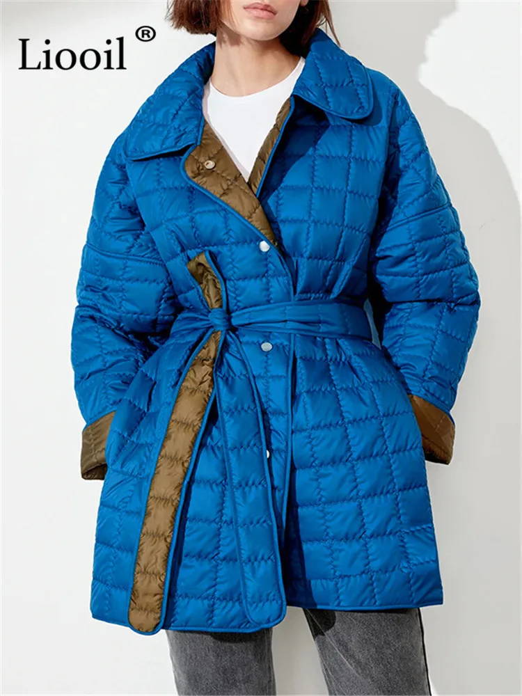 Женская утепленная мешковатая куртка с квадратным узором, двусторонняя верхняя одежда с карманами и поясом, осенне-зимняя уличная одежда, с...