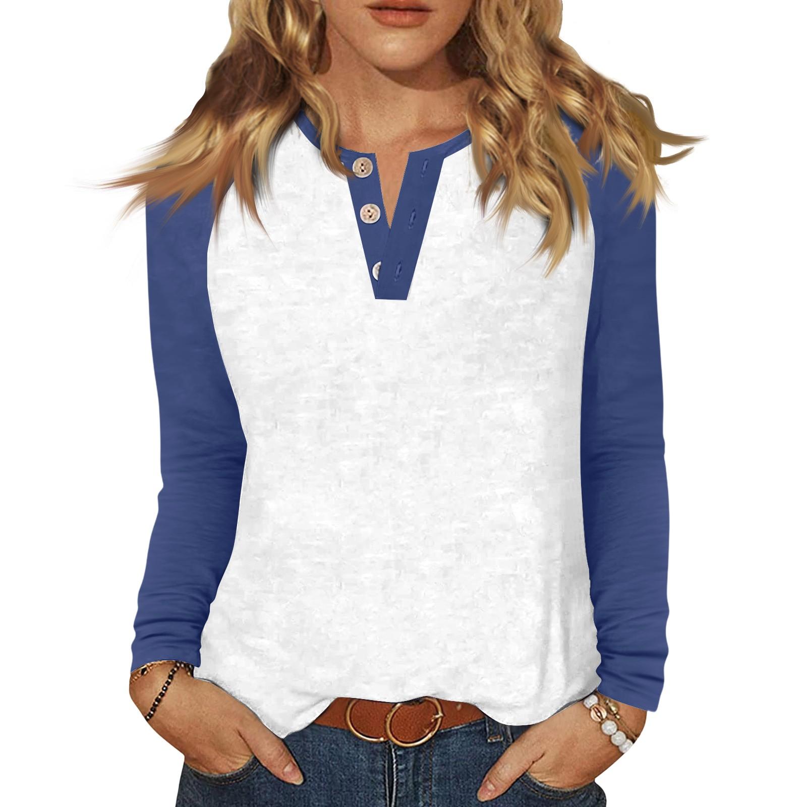Женская футболка колор-блок на пуговицах с длинным рукавом, повседневная, для выходных, модная, базовая, с V-образным вырезом, обычная XXL