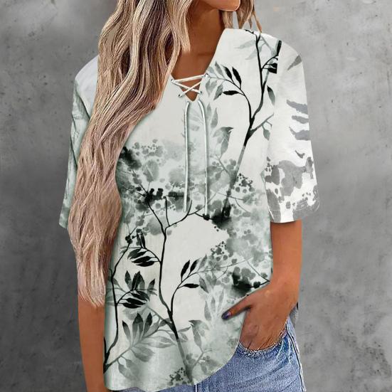 Женская футболка с v-образным вырезом и коротким рукавом спереди на шнуровке, летний пуловер с принтом перьев, верхняя женская одежда
