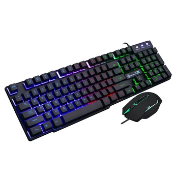 Shipadoo D500 Wired Keyboard and Mouse Set, USB Character Glowing Rainbow Floating Key Manipulator Game