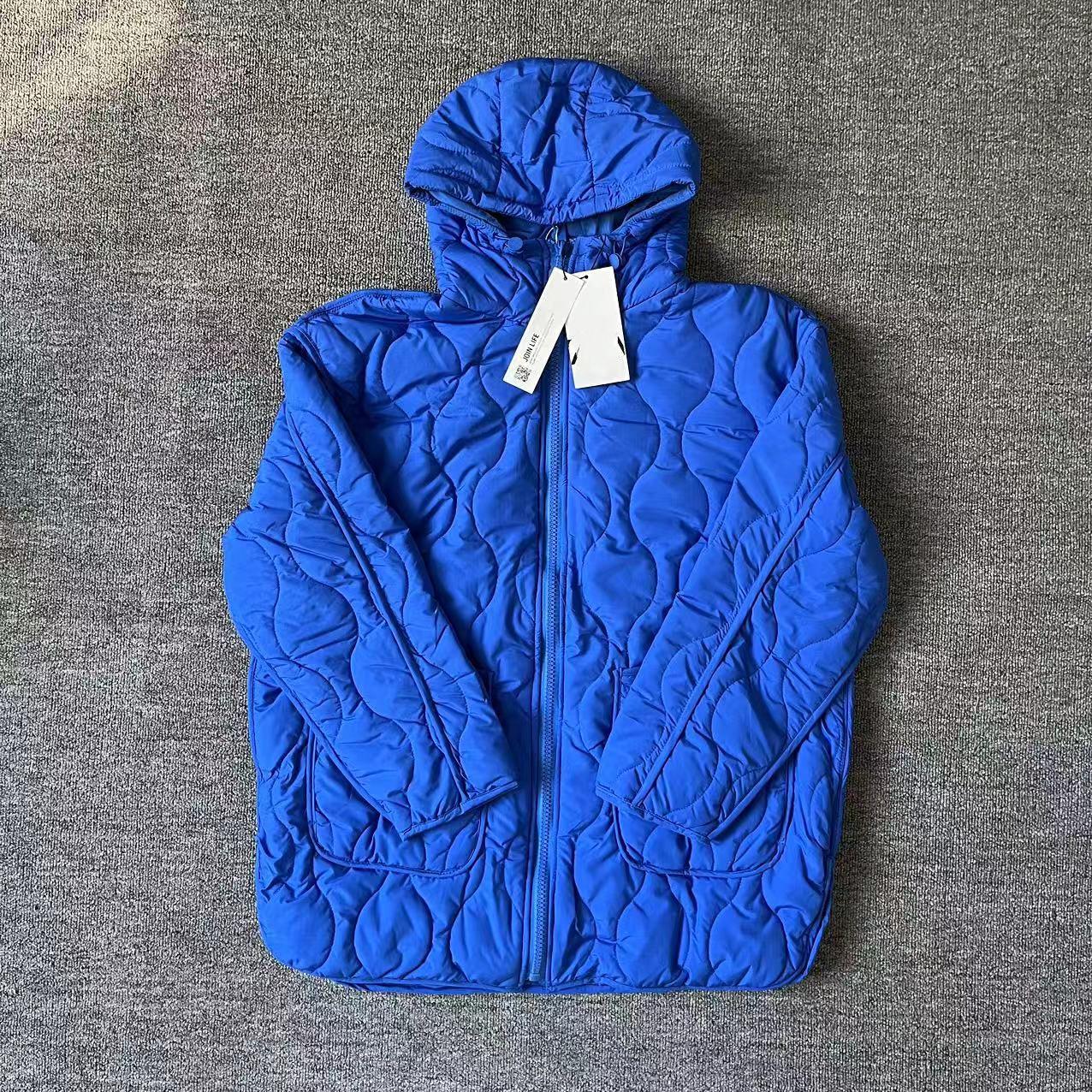 Женская хлопковая куртка с капюшоном и большими карманами, Осень/Зима 2024 L синий