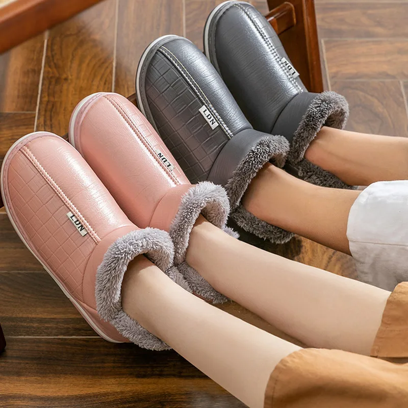 Женская хлопковая обувь, теплые плюшевые тапочки для пар, слипоны на плоской подошве, толстая Водонепроницаемая зимняя обувь, удобная домаш...