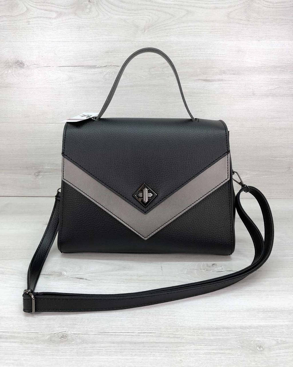 Женская черная деловая сумка формата а4 портфель добротная оригинальная сумочка саквояж классическая на плечо, Черный