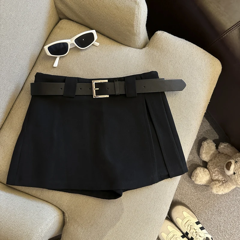Женская черная, серая повседневная осенне-зимняя шерстяная мини-юбка, шорты Y2K Harajuku 90-х годов, милая школьная мини-юбка в стиле ретро, новинка 2025 года